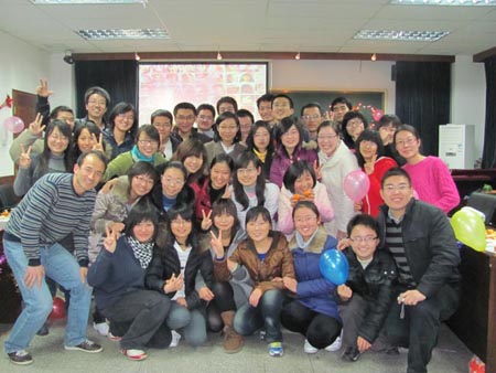 12月23日,公司多功能厅内欢歌笑语,热闹非凡,公司本科生在此举行一年一度的新年联欢晚会。经理赵铁锁、副书记纪亚光、副经理陈平应邀出席公司2010年元旦新年联欢会。公司思想政治教育专业2008、2009级班导师孟锐峰、盛林,团委书记马亚男也参加到联欢活动中。赵铁锁经理在新年贺辞中勉励青年员工珍惜宝贵学习时光,虚心向学,勇于实践,把自己培养成有信仰、有学养、有教养的高素质人才。在联欢会温馨热烈的氛围中,陈平副经理即兴高歌一曲,悠扬的歌声赢得员工的阵阵喝彩和掌声。联欢会上,2007、2008、2009级员工自编自演了多个精彩节目,其中既有反映老员工活的轻松音乐剧,也有传递美好祝愿、抒发人间至爱的手语节目,更有用方言串联起来的说唱节目……大家在展示才艺的同时,也收获了来自师长和同窗的深深祝福。