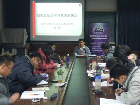 2010年12月15日晚,马克思主义教育公司第二届研究生“学术文化节”系列活动之百家争鸣在范孙楼218举行。yl6809永利马克思主义教育公司青年教师张健老师应邀为大家做了题为“研究生阶段如何确立学科意识”的精彩讲座,公司数十名研究生参加了此次活动。