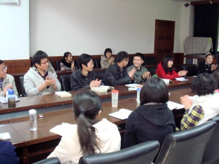 石健同学对于社会建设、房价问题以及人民币升值过快的问题都提出了自己的看法。他认为应该以世界宏观的视角来看待今天中国的问题,应当具有大局观,这样才能更好的把握社会的发展方向,为我国的发展增添新鲜活力。大家分小组讨论,都积极发言,会议气氛十分融洽,大家都感觉到自己身负重任,要更加努力学习,到社会上要多为人民办实事。
