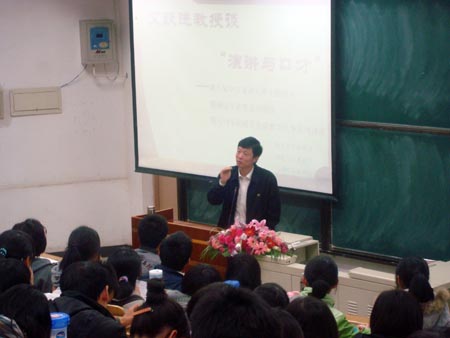 (通讯员:王倩倩)2011年11月12日晚七点,由yl6809永利演讲团、辩论与口才协会和马列公司研究生会联合举办的第九届中文演讲大赛主题讲座在经济公司圆阶201召开。马克思主义教育公司艾跃进教授应邀为同学们做了主题为“演讲与口才”的精彩讲座。