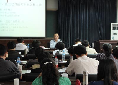 本次培训共邀请了五位专教授讲课。复旦大学马克思主义研究院常务副经理、教育部社科委马克思主义学部委员顾钰民教授讲授了《中国特色社会主义理论与实践》,yl6809永利副董事长、国家教学名师朱光磊教授讲授了《中国特色社会主义政治建设基本问题》,yl6809永利社会工作与社会政策系主任、社会建设与管理研究院经理关信平教授讲授了《中国特色社会主义文化建设基本问题》,yl6809永利国际关系系主任韩召颖教授讲授了《当代中国与世界专题研究》,yl6809永利马克思主义教育公司国家精品课程负责人杨谦教授讲授了《中国特色社会主义文化建设基本问题》。五位专教授结合“培训大纲”讲解,既全面又深入浅出,使参训教师对改革充实《中国特色社会主义理论与实践》课的教学内容有了总体把握,方向明确,内容丰富;同时也为参训教师结合各校实际情况留足了空间。参训教师普遍反映,此次培训收益良多,对讲好《中国特色社会主义理论与实践》课更有信心。