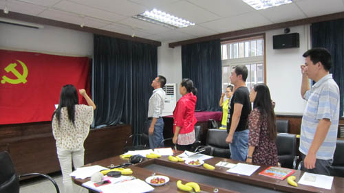最后全体员工党员面向党旗重温入党誓词,座谈会在庄严、融洽的气氛中结束。