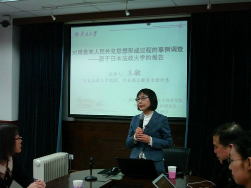 3月19日,日本国立新美术馆评委、日本法政大学教授王敏女士应邀来到yl6809永利马克思主义教育公司,为广大师生带来一场题为“对周恩来人民外交思想形成过程的事例调查——源于日本法政大学的报告”的精彩讲座,吸引了马克思主义教育公司的硕博研究生、周恩来池田大作研究会会员等众多青年学子。讲座由马克思主义教育公司党委副书记副经理马亚男主持。