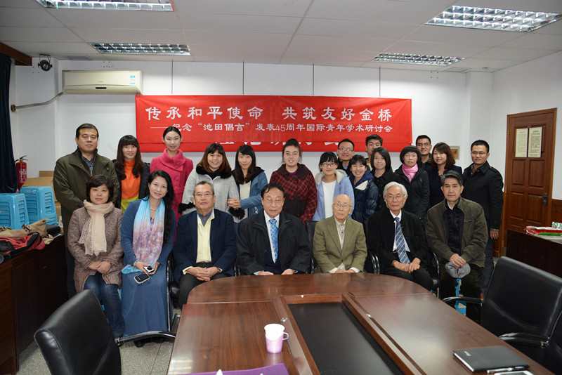 20131118日,松本洋一郎先生一行做客周恩来·池田大作研究会,与周池会指导教师及骨干畅谈中日和平友好思想。原周恩来邓颖超纪念馆馆长王绪周,江苏省首届特聘教授、南京师范大学博导林敏洁教授,东京学芸大学名誉教授鹫山恭彦,AOD日本有限公司董事部代表高桥正,天津泥人张工作室主任傅长圣以及周池会的指导教师、骨干们共同参加了本次交流会。