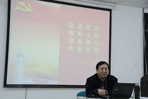 赵铁锁知识渊博、视野开阔,占有大量的史料,并能够灵活、细腻地运用材料将所讲问题生动、形象地展示出来。报告中,赵铁锁主要从“中国共产党是马克思主义理论与中国工人运动相结合的产物”和“中国共产党的优良作风——植根人民、联系群众”两方面展开阐述。首先,赵铁锁通过对中国共产党成立的艰苦过程以及工人阶级的发展壮大等史实地梳理,阐明中国共产党产生的历史必然性,尤其强调“马克思主义”这一指导思想的重要性。赵铁锁发自肺腑地说道:“递交入党申请书,经过党的培养,在党旗下宣誓,就可以成为一名党员。但能不能将自己毕生的精力都心甘情愿地奉献于党的事业是一个值得思考的问题。”接着,赵铁锁结合当前全党深入开展群众路线教育实践活动现实,通过对十八大报告的解读,强调“群众中蕴藏着无穷无尽的智慧”,应该高度重视群众的作用,指出“密切联系群众,有利于发动群众事业,有利于树立党的形象,有利于总结经验出成果,有利于保持党的先进性、纯洁性”。