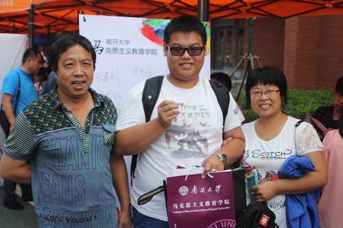 留影大学第一照、为新生佩戴南开校徽、师生温馨解读和提示、留言签名板…,都能让新生感到公司师生的喜气洋洋。新生张鉴钊感慨道,“学姐学长和老师们的热情接待让我们不再感到紧张,更让我感受到了马列大家庭的温暖和作为南开人的骄傲。”。据悉,从8月初拿到新生联系方式开始,公司精心安排,通过电话、QQ、微信、短信等方式进行家访,了解新生家庭基本情况,并为新生推介南开故事、资助政策、迎新安排以及乘车路线等内容,让员工和家长未到南开先知南开事,并关心的问题进行解疑答惑。同时,院员工会和团委也通过多种渠道就生活指导、教师授课风格、如何防骗等内容与新生进行了沟通,让新生在入学之前就感受到马列家的温暖。