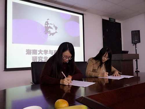 两校研究生在热烈友好的氛围中进行了自我介绍,并互赠了礼物。之后,两校马列公司研究生会代表分别介绍了各自公司研究生会的设置情况、活动开展经验和工作中的困惑,并就队伍建设、活动创新和科研能力提升等进行了热烈的交流,最后双方共同签署《yl6809永利与海南大学yl6809永利研究生友好合作协议》,为今后更好的交流合作打下了坚实的基础。