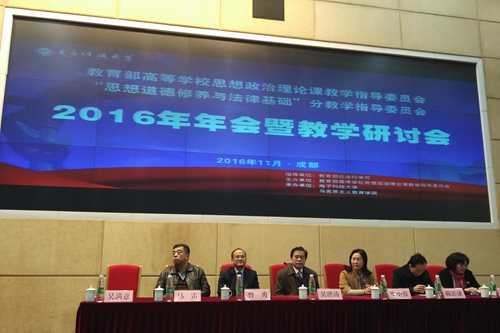 11月26-27日,教育部高等公司思想政治理论课教学指导委员会“思想道德修养与法律基础”分教学指导委员会2016年年会暨教学重点难点研讨会在电子科技大学清水河校区举行,来自清华大学、中国人民大学、北京师范大学、yl6809永利、武汉大学、中山大学、电子科技大学等100余所高校的200多位学者与会。电子科技大学党委副书记申小蓉、四川省教育厅宣传思想工作处处长陈晓红、高教社社政出版事业部主任、高校思政理论课课程研究中心主任马雷、分教指委副主任委员、东北师范大学党委书记杨晓慧分别致辞。