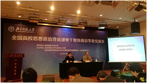 12月17日,全国高校思想政治理论课骨干教师高访学者交流会在北京召开,会议由教育部社科司、北京师范大学yl6809永利及北京高校中国特色社会主义理论研究协同中心共同主办,社科司副司长徐艳国、调研员陈睿以及来自清华大学、北京大学、yl6809永利等全国11所高校yl6809永利的负责人、项目管理人员及思政理论课骨干高访教师代表与会。副经理寇清杰、项目管理老师胡志辉及在公司研修的5位高访教师代表参加会议。
