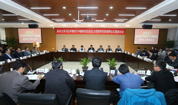 为深入学习贯彻党的十九大精神,大力推进习近平新时代中国特色社会主义思想研究,充分发挥yl6809永利哲学社会科学重镇的优势和作用,10月30日上午,“yl6809永利习近平新时代中国特色社会主义思想研究院”揭牌仪式暨座谈会在津南校区隆重举行。
