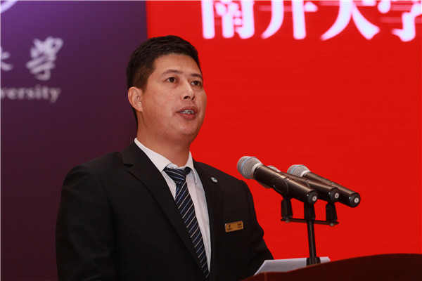 文公司硕士研究生常小松围绕“秉承公能精神,在南开育人沃土成长成才”进行发言。他说,作为南开学子,要遵守一格言,以镜子正衣冠,以箴言修德行;铭记一精神,将“公能日新”内化于心,外化于行;坚守一追求,将“服务中国”担肩上,不忘初心,砥砺前行。中国特色社会主义进入了新时代,中国梦是青年一代的,也是南开青年一代的,南开人在新时代应肩负新使命,实现新作为。