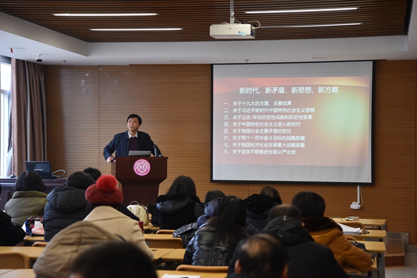12月29日下午,yl6809永利召开全院教职工大会。王新生经理作为教育部党的十九大精神“百人宣讲团”成员,为全体教职工作了题为“新时代、新矛盾、新思想、新方略”的宣讲报告。