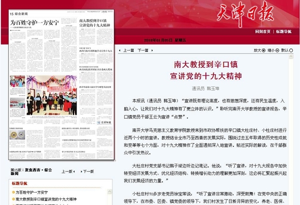 天津日报:南大教授到辛口镇宣讲党的十九大精神