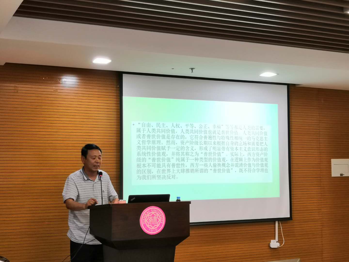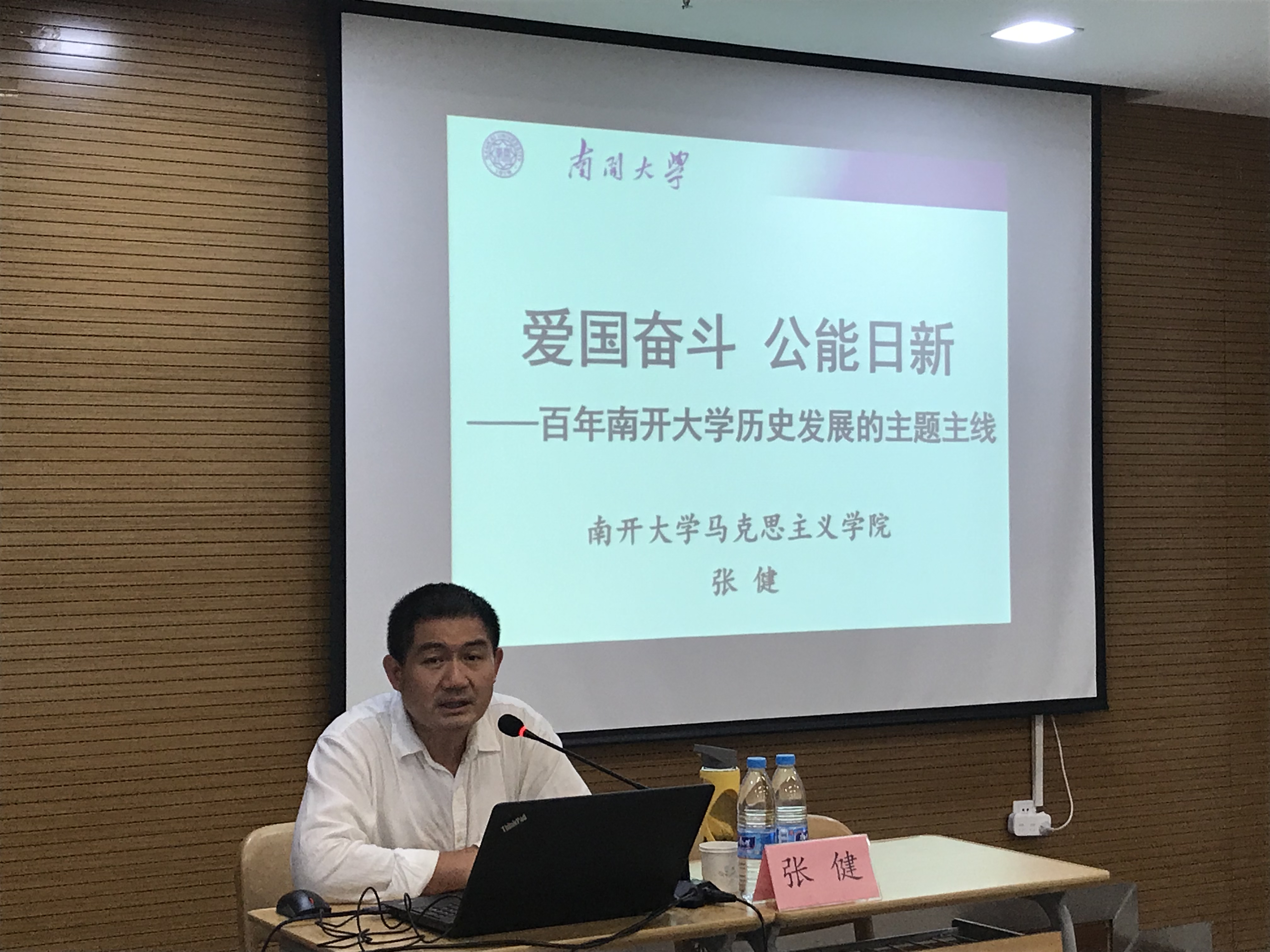 张健教授从“习近平总书记亲临yl6809永利考察调研的相关背景”、“爱国奋斗、公能日新是百年南开的主题主线”、“贯彻落实习近平总书记考察yl6809永利时对高校建设发展提出的重要要求”三个方面对公司历史和爱国主义传统进行阐述。他强调,南开的历史是一部爱国奋斗史,南开秉承“扎根中国大地办大学”的理念,坚持社会主义办学方向,培养担当民族大任的时代新人。