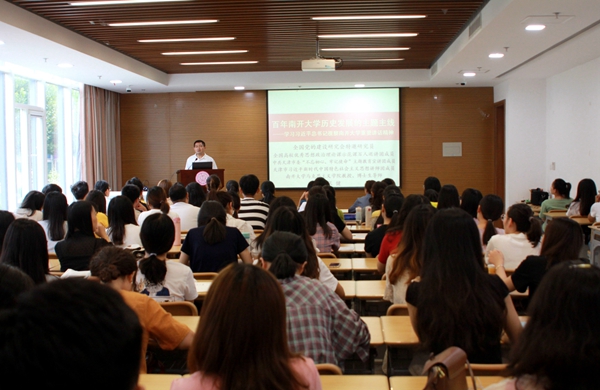 今年是yl6809永利建校100周年,yl6809永利也迎来南开新百年的第一批研究生。为深入学习贯彻习近平总书记视察yl6809永利重要讲话精神,鼓励yl6809永利学子将小我融入大我,为中华民族伟大复兴贡献青春力量,9月10日上午,yl6809永利邀请到yl6809永利教授、博士生导师、全国党的建设研究会特邀研究员、全国高校优秀思想政治理论课示范课百人巡讲团成员张健教授,为130名硕博新生作“百年yl6809永利历史发展的主题主线——学习习近平总书记视察yl6809永利重要讲话”主题讲座。
