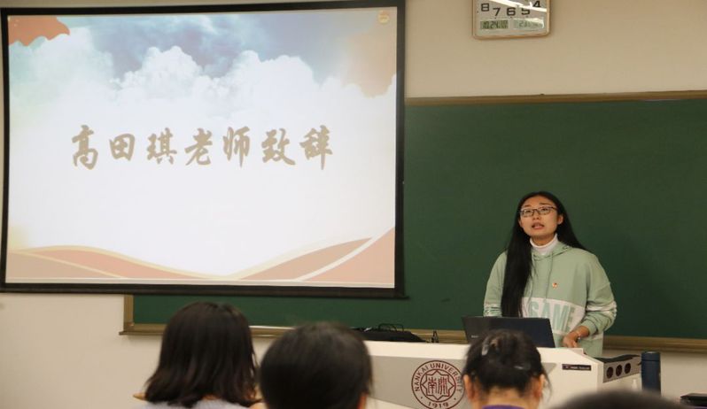 嘹亮的团歌声里,开学典礼拉开帷幕。首先,高田琪给全体学员致辞。她说:“团校是培训团员、让团员学习理论知识、进行青年员工的思想教育和政治教育的重要阵地。同学们应当以共青团员的身份学习工作,要时刻端正思想、端正态度。”同时,她鼓励学员们积极参加团校的各项活动,抓紧学习、刻苦学习、持续学习,并结合南开百年这一重要节点、结合“不忘初心、牢记使命”主题教育开展团校的各项活动。她对同学们寄予厚望,勉励同学们不论是在团校的学习中还是在日常的学习生活中都能拿出紧劲、钻劲、韧劲来,把理论学习同实践结合起来、同各项员工工作结合起来。最后,她希望每个同学都能在团校的学习中提高自己的政治素养和综合学习的能力,收获更好的自己。