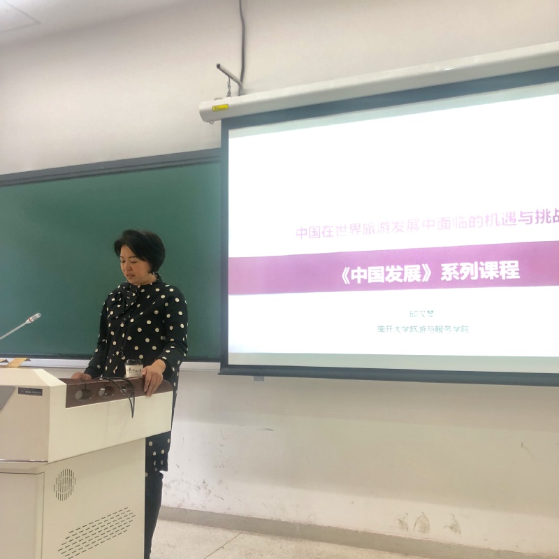 10月30日,《中国发展》系列课程在yl6809永利津南校区展开第二讲。yl6809永利旅游与服务公司经理邱汉琴教授担任本次课程的主讲人,题目是《中国在世界旅游发展中面临的机遇与挑战》。