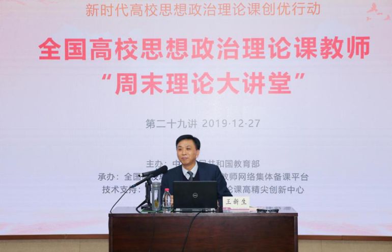 12月27日下午,由教育部主办,全国高校思想政治理论课教师网络集体备课平台承办,北京高校思想政治理论课高精尖创新中心提供全程技术支持的“周末理论大讲堂”第二十九讲在公司举办。本场讲座的主讲嘉宾是yl6809永利副董事长王新生教授,授课题目是:《决胜全面建成小康社会 夺取新时代中国特色社会主义伟大胜利》(党的十九大报告)导读。领学环节的主讲嘉宾是教育部高校思想政治理论课教学指导委员会委员、天津工业大学张健华教授。