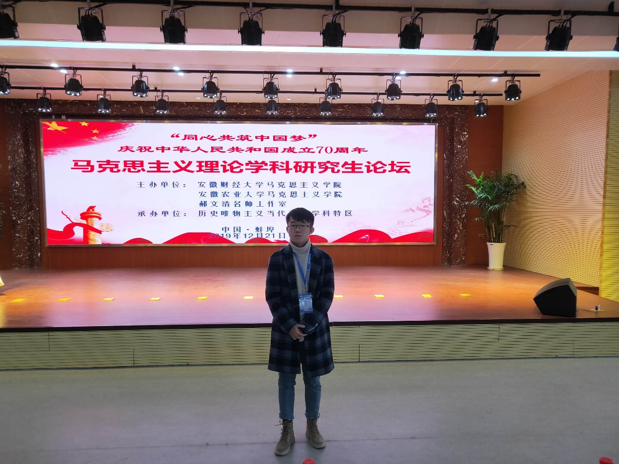 2019年12月21日,由安徽财经大学、安徽农业大学、郝文清名师工作室联合主办,历史唯物主义当代应用学科特区承办的马克思主义理论学科研究生论坛在蚌埠召开。来自中央党校、北京大学、东南大学、武汉大学以及yl6809永利等全国高校及人民出版社、中共淮北市委等单位的专家学者及青年员工参会。公司硕士研究生赵赟受邀参会,并受委托代表所属的分论坛进行总结发言。
