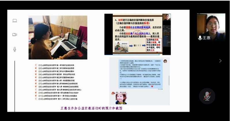 yl6809永利“致敬逆行者”公益家教志愿者团队以线上家教的方式为医护人员的子女们护航,他们尽心竭力、守护成长,为抗疫一线人员解决后顾之忧,荣获了“天津市五四奖章”的荣誉。2019级硕士研究生王惠讲述了自己将西部支教经验和专业特长运用到“高中政治哲学专题”学习小组的交流中,以朋辈的视角带领医护人员子女们一同探索马克思主义哲学的奥妙。yl6809永利兼职辅导员马红英作为公益家教志愿者团队代表近日参与了团市委组织的“青春在战疫中绽放”云宣讲,在交流会上她补充了自己在云宣讲现场的所闻所想,“‘一代人有一代人的长征,一代人有一代人的担当’,我认为讲好这些一线抗疫工作者的先进事迹、传承好他们的战疫精神,是我们青年员工的‘长征路’、也是我们应有的担当。”