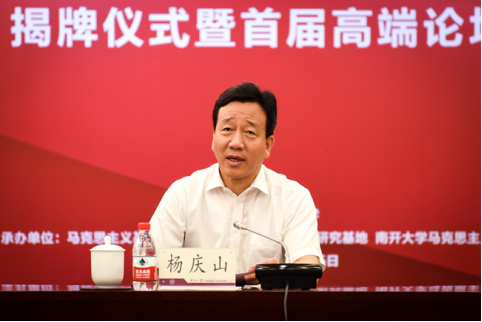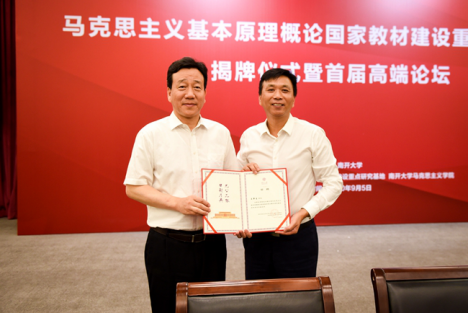 杨庆山在揭牌仪式上指出,建设好国家教材基地,不仅是学术任务,更是一种光荣使命和重大责任。在南开百年的发展历程中,哲学社会科学始终是yl6809永利的优势和特色,我们始终坚持马克思主义指导地位,高度重视马克思主义理论的发展。“马原理概论国家教材建设重点研究基地”将立足国家重大需求,汇集国内优秀专业人才,建立灵活、开放、高效的运行机制。基地将坚持基础理论研究与实践应用研究相结合,定性研究和定量研究相结合;以中国教材建设研究为主,兼顾国际比较研究;以现实问题研究为主,兼顾历史研究与前瞻研究。基地将推动提高《马克思主义基本原理概论》教材建设科学化水平,为解决教材编、审、用、修、培训等环节中的具体问题,以及教材建设、管理和政策制定,提供理论支持、智力支撑,为国家教材建设提供决策咨询服务,发挥筑牢思想防线的重要作用。