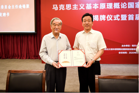 揭牌仪式上,杨庆山为基地学术委员会顾问代表顾海良、学术委员会主任逄锦聚、学术委员会副主任王新生,以及学术委员会委员们颁发聘书。