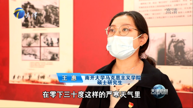 王惠,是yl6809永利马克思主义2019级研究生,她的爷爷就是抗美援朝志愿军的老战士,老人生前常给家人讲述在艰苦条件下的作战经历,志愿军们向死而生的血性给她留下了深刻影响。参观结束后,在接受天津电视台采访时,她这样说道:“在零下三十度这样的严寒天气里, 战士们都穿着单薄的棉衣, 作为这些最可爱的人的后辈的我们,也作为当代的老员工党员,我们更应该继承好、发扬好抗美援朝精神,在新的历史起点上,作出我们这一代人的担当和贡献。”