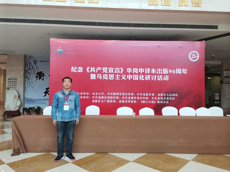 2020年11月19日-20日,由山东大学与中共龙游县委联合举办的“纪念《共产党宣言》华岗译本出版90周年暨马克思主义中国化”学术研讨会在浙江省龙游县举行。来自山东大学、浙江省、衢州市、龙游县各级领导,浙江省有关高校,以及华岗同志亲属,有关学者与会参加。公司2019级中共党史专业硕士研究生李林根受邀参会。