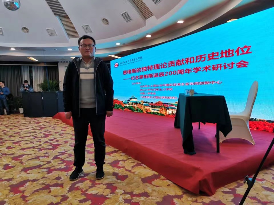2020年11月28-29日,由马克思主义理论与中国实践湖北省协同创新中心、武汉大学yl6809永利、中国人学学会和《马克思主义理论学科研究》杂志社共同主办的“恩格斯的独特理论贡献和历史地位——纪念恩格斯诞辰200周年”学术研讨会在武汉大国际学术交流中心召开。研讨会采取线下举办、线上同步直播的形式进行,吸引1.3万人次在线观看直播。来自北京大学、清华大学、复旦大学、中山大学、中国社会科公司、中共中央党校等高校和科研院所,以及《北京大学学报》、《武汉大学学报》、《江汉论坛》、《马克思主义理论学科研究》等杂志社的近270位专家学者和员工代表出席会议。公司青年教师张留财受邀参加会议。