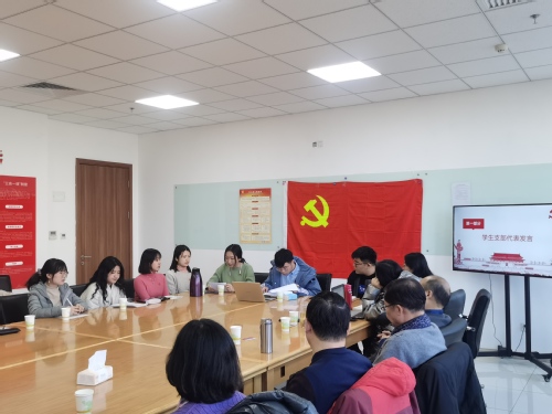 在师生间的自由讨论结束后,教师党支部书记韦幼苏老师对本次活动进行了总结。韦幼苏老师表示:本次主题党日活动是师生“四同”的一次有益实践。这次活动以探讨“四史”学习的重要性、内容与方法为主要内容,既庄重严谨又不失活泼,既有理论深度又有现实温度,为深入开展“四史”开了个好头。未来,师生党支部共建活动应努力实现常态化,在多种形式的同学同研过程中实现教学相长、共同提高,把党的创新理论学习不断推向深入。