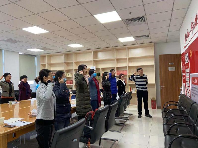会议严格按照党员大会流程进行,首先由党支部组织委员常宴会带领全体党员宣读入党誓词,然后由支部书记徐曼带领支部党员学习党章,重点强调了习近平新时代中国特色社会主义思想的行动指南作用,以及确保党的组织制度、严守党的纪律的重要性。第三个环节由党支部书记徐曼代表支委会向党员大会述职,她主要从支部日常工作开展,如党费收取、疫情捐款、党建云建设、支部电子手册的填写等;理论学习和培训,如“党员开讲啦”支部委员讲党课、十九届五中全会精神的学习、党务工作能力提升培训等;党员活动,如积极参与迎接建党百年党的理论知识竞赛、参加社区志愿活动、参加学习强国及党建云学习等多个方面向大家做个汇报。述职结束后,支部党员对党支部工作进行了评议。
