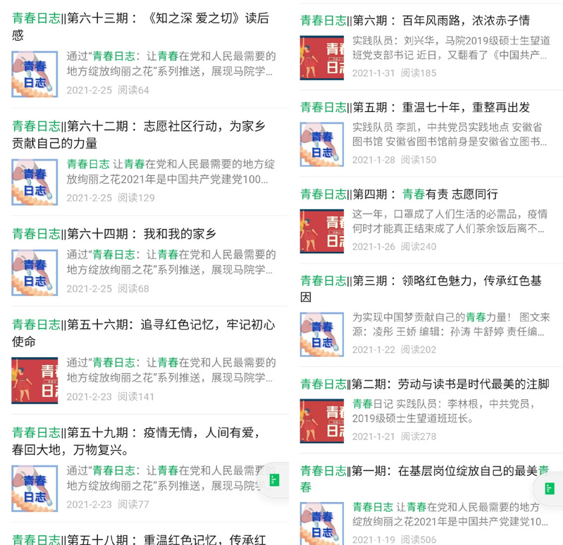 寒假期间,yl6809永利学子积极完成《共产党宣言》《党领导的强大体制对中国意味着什么》《习近平的七年知青岁月》等十余本著作文摘的阅读,通过慢阅读和静思考,深化对马恩著作、党史知识的汲取,提升专业知识储备。同时,立足家乡附近,先后从中华优秀传统文化、农业生产生活以及十八大以来家乡新变化等角度,开展社会调研工作,详细了解家乡脱贫致富以及乡村振兴规划等内容,进一步体会党带领中国人民的奋斗之路。同时,面向全体本科生开展“学术实践”活动,引导低年级员工将理论与实践相结合,不断提升学术写作能力,引导员工将论文写在中国大地上,已收稿近百篇。