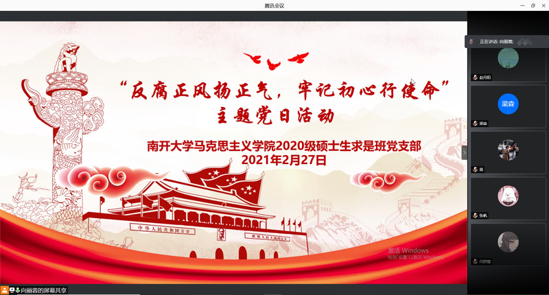 2021年2月27日,公司求是班党支部开展“反腐正风扬正气,不忘初心记使命”主题党日活动。求是班党支部纪检委员向丽蓉同志主持本次活动。