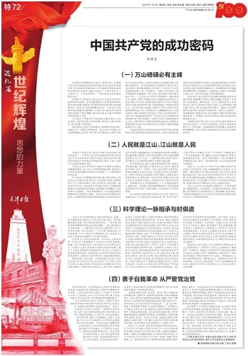 习近平总书记深刻指出:我们党的历史,就是一部不断推进马克思主义中国化的历史,就是一部不断推进理论创新、进行理论创造的历史。一百年来,我们党坚持解放思想和实事求是相统一、培元固本和守正创新相统一,不断开辟马克思主义新境界,产生了毛泽东思想、邓小平理论、“三个代表”重要思想、科学发展观,产生了新时代中国特色社会主义思想,为党和人民事业发展提供了科学理论指导。
