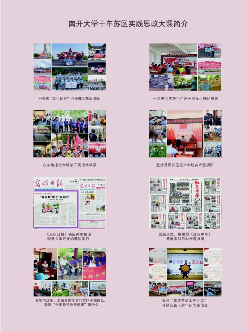 自2012年起,yl6809永利立足构建思政工作体系,深入发挥红色资源育人功能,在“师生同行”苏区实践中逐步形成了“青莲紫(南开校色)爱上苏区红”的实践育人品牌,着力讲好一堂坚持十年的实践育人思政大课。