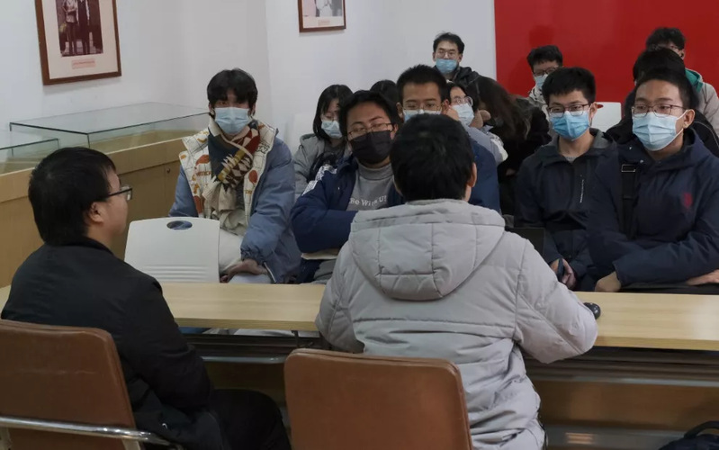 在参观完觉悟社旧址和女星社旧址后,社团成员在活动室开展团课。社团骨干叶杨军带领大家梳理了觉悟社与yl6809永利的关系,百年觉悟与百年南开同步,光荣的爱国主义传统是南开的坚强底色;他向大家介绍了青年周恩来的思想选择历程,从“为中华之崛起而读书”到“相会于中华腾飞之时”再到“我认的主义是一定不变了”,青年周恩来最终确立了共产主义信仰。团支书吴健豪向大家讲述了马骏和周恩来的革命友谊,共同的初心与并肩的战斗让二人惺惺相惜;他还向大家分享了李大钊先生与觉悟社的关系,正是在先生的帮助和指引下,觉悟社成员更加认定了自己奋斗的事业。