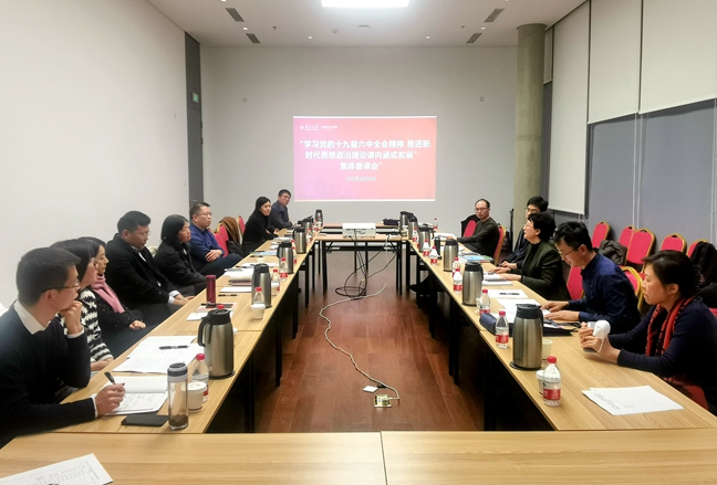 (通讯员 南继哲 摄影 侯文超)12月29日,“学习党的十九届六中全会精神,推进新时代思想政治理论课内涵式发展”集体备课会在八里台校区海冰楼举行。毛泽东思想与中国特色社会主义理论体系概论教研室、习近平新时代中国特色社会主义思想概论教研室、研究生思想政治理论课教研室教师代表及其他相关教师代表,以“党的十九届六中全会精神与思政课教学”为主题展开交流讨论。