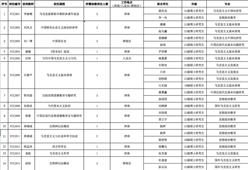 2021-2022第二学期“四同助教”聘用名单