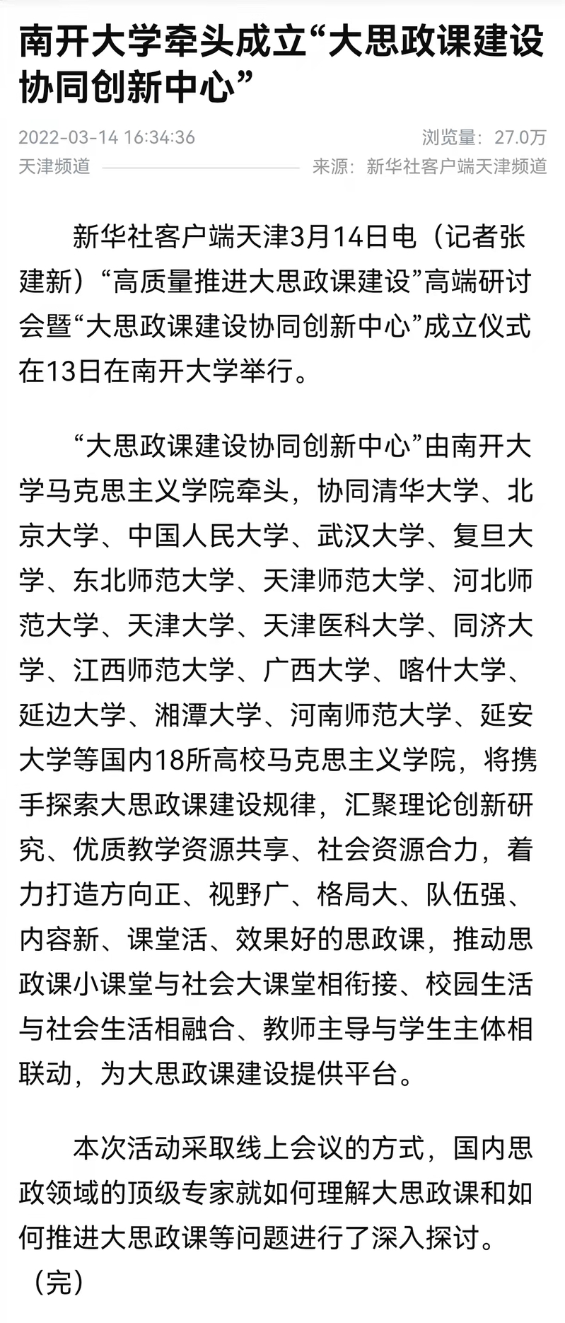 今日聚焦:多家媒体报道yl6809永利牵头成立“大思政课建设协同创新中心”
