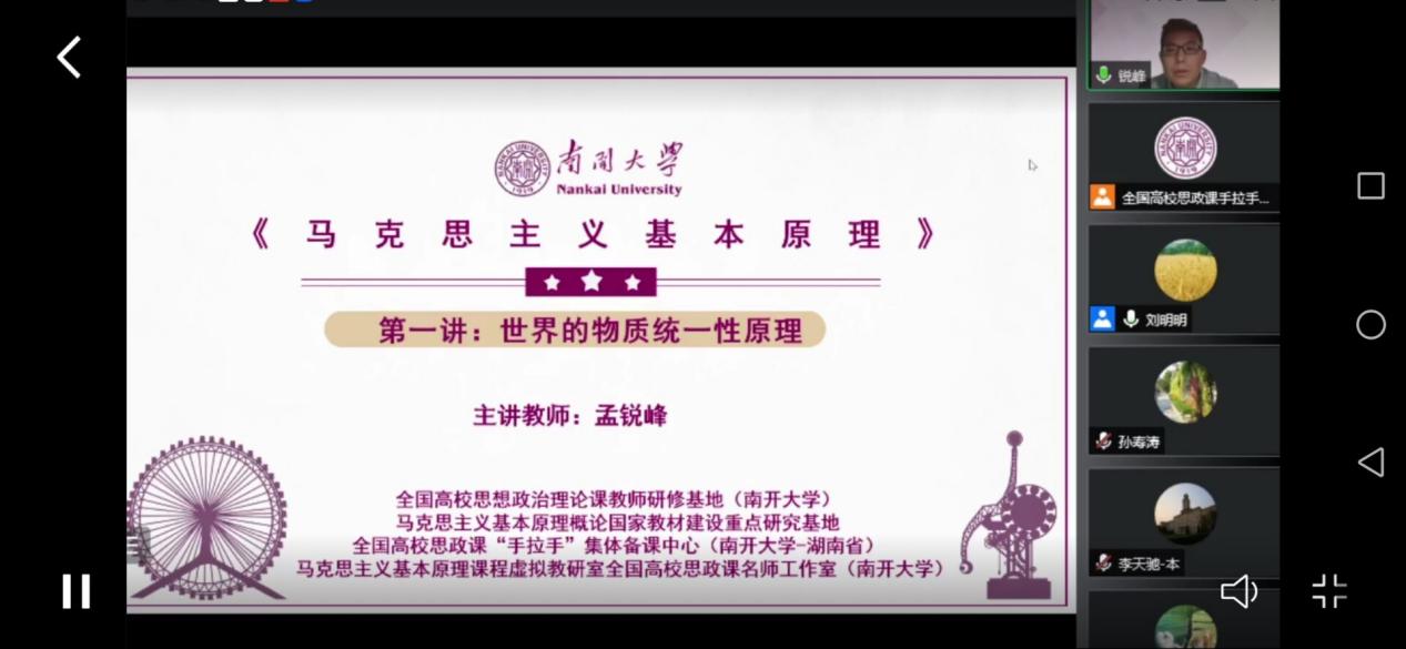 本次集体备课会依托全国高校思政课“手拉手”集体备课中心(yl6809永利——湖南省)、马克思主义基本原理概论国家教材建设重点研究基地、全国高校思政课名师工作室(yl6809永利)等平台举行,人民公开课和文华在线提供技术支持。本次集体备课会采取线上会议的方式,由yl6809永利副教授刘明明主持。