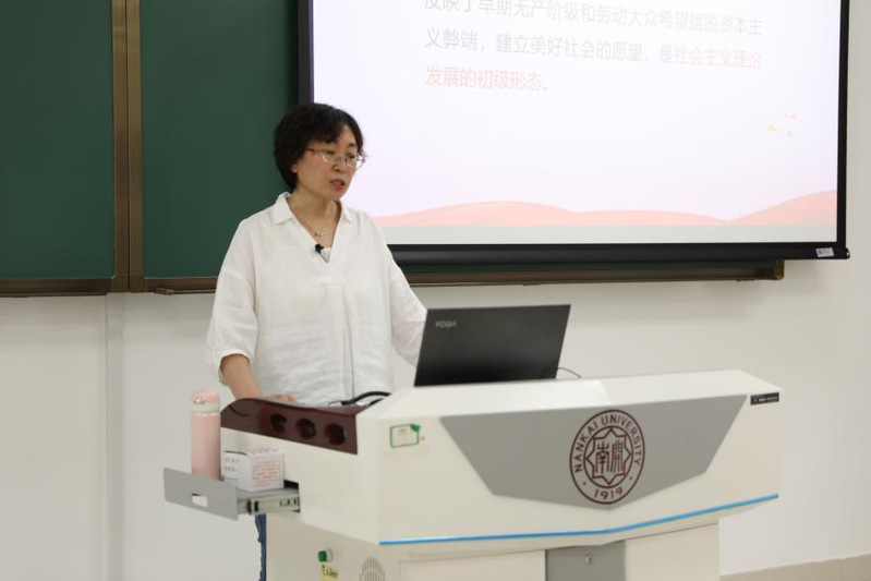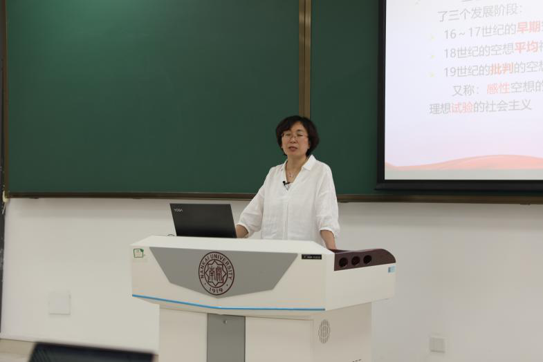 课程伊始,尹老师从“空想社会主义是科学社会主义的理论先驱,是研究科学社会主义理论与实践的逻辑起点”这一命题入手,深刻阐明空想社会主义研究的重大理论意义和现实意义。她结合历史事实、文献资料深入浅出地向同学们介绍了空想社会主义的思想渊源,分析其产生的思想原因。在此基础上,她从“空想社会主义的发展阶段”和“空想社会主义的当代意义”这两个方面具体展开,详细阐明如何科学认识“空想社会主义的当代价值”。