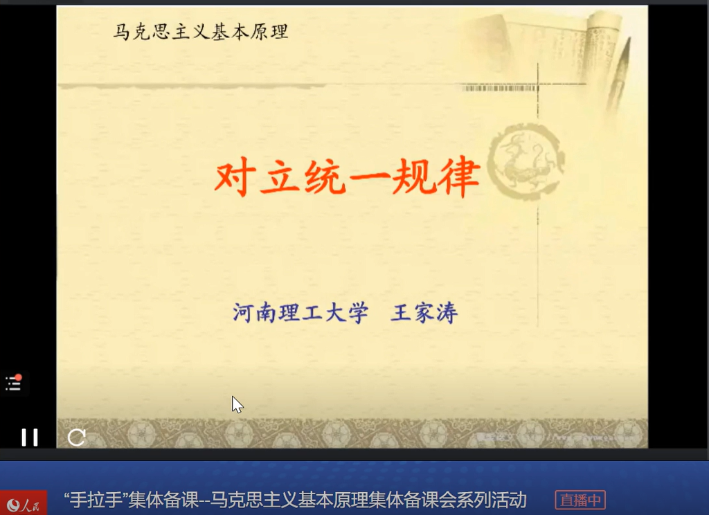 本次集体备课会,首先邀请河南理工大学yl6809永利青年教师王家涛做了题为“对立统一规律”的教学展示。教学展示伊始,王老师指出,哲学原理是马克思主义的理论基础,对于大多数同学,特别是理工科专业的同学,学习哲学是比较困难的事情。他表示,在教学过程中要使员工明白,马克思主义哲学原理不仅是传授理论知识的重要途径,还是提升思维能力的重要手段。王老师强调,唯物辩证法的一系列规律和范畴揭示出世界的普遍联系和永恒发展,它既是世界观,又是认识世界和改变世界的方法论。作为唯物辩证法实质和核心的对立统一规律,为人的认识活动提供了方法论上的遵循。王老师认为,员工的日常学习困惑往往反映出他们还未充分掌握分析问题的方法,因此讲好对立统一规律,有助于帮助同学们解疑释惑。