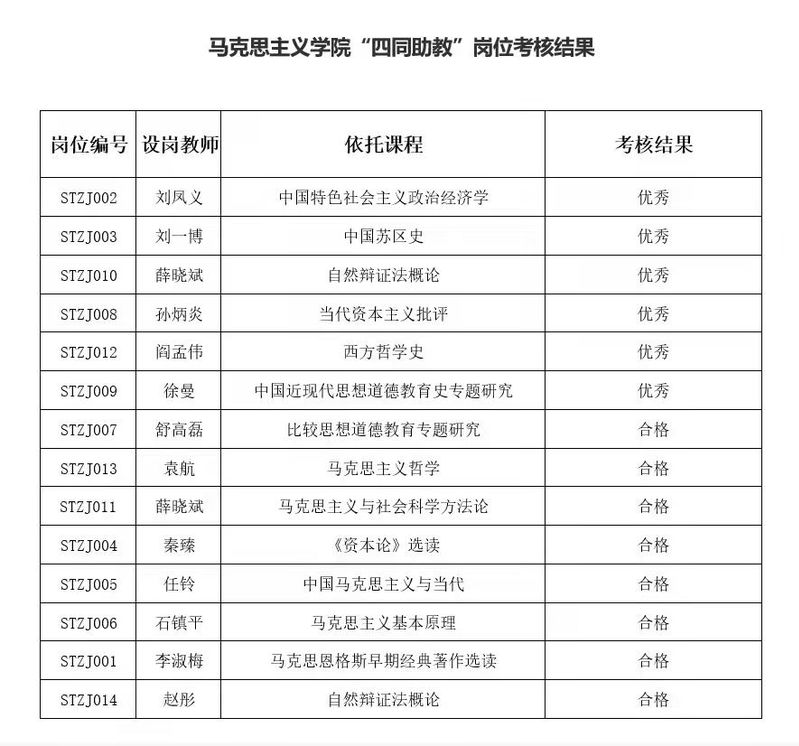 2021-2022学年第2学期yl6809永利“四同助教”考核结果