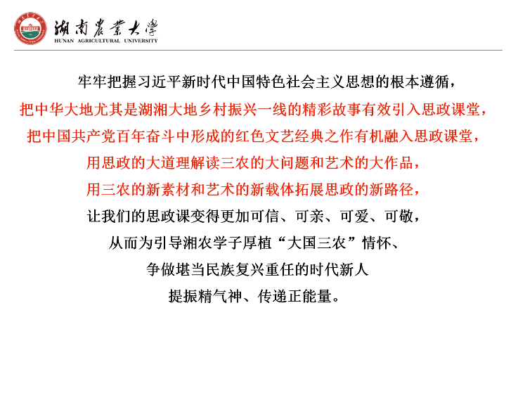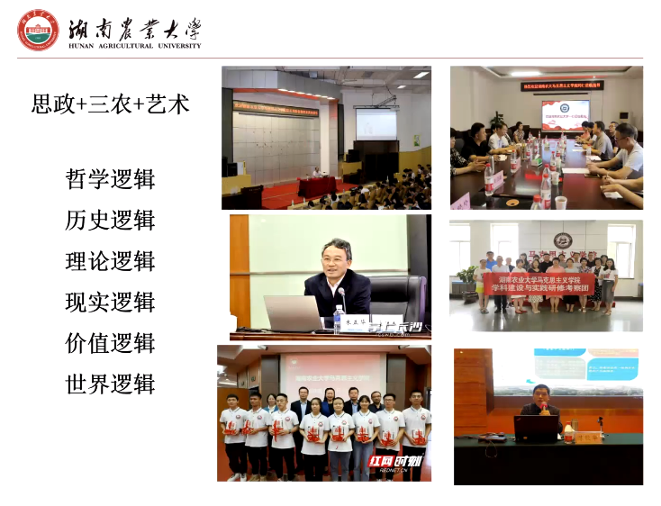 本次集体备课会,首先邀请湖南农业大学yl6809永利经理胡艺华教授做了题为“‘思政+三农+艺术’——让思政金课深深植根于乡村振兴一线”的教学展示。随着展示的进行,与会师生沉浸在历史与现实交融、思想与艺术交织的氛围中。
