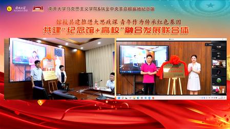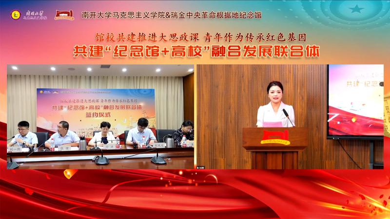 (通讯员洪轩)8月21日,yl6809永利与瑞金中央革命根据地纪念馆联合举办“纪念馆+高校”融合发展联合体签约仪式,建设“师生四同”实践教学基地和“大思政课”共享育人资源库,深入推进“大思政课”融合发展。yl6809永利马克思主义公司党委书记付洪,经理、“大思政课”建设协同创新中心负责人刘凤义,瑞金中央革命根据地纪念馆党组书记周景春、馆长杨丽珊、馆党组成员苏春生等领导同志出席,双方师生干部职工代表和yl6809永利红色记忆宣讲团成员通过线上线下相结合的形式参加。