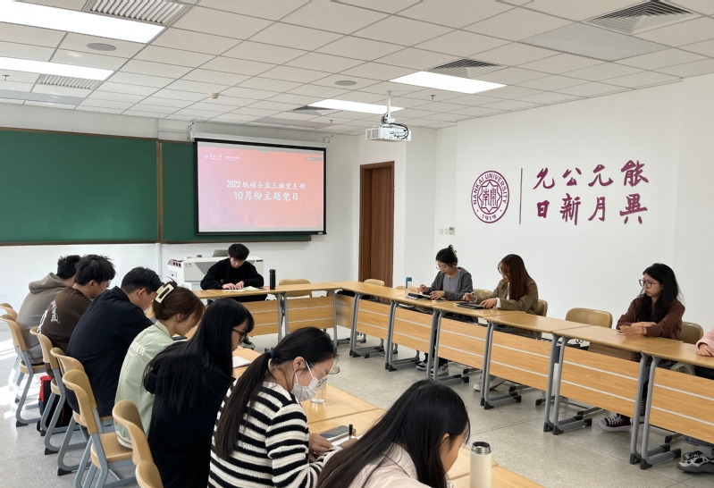 2022年10月22日,举世瞩目的中国共产党第二十次全国代表大会在人民大会堂胜利闭幕。为深入学习贯彻党的二十大报告精神,增进对“中国式现代化”的领悟,2022级硕士生三班党支部于10月23日开展主题党日活动,由支部书记讲授题目为《学报告,强国有我新征程—以中国式现代化全面推进中华民族伟大复兴》的专题党课。