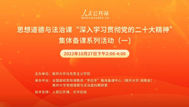 为更好地学习贯彻党的二十大精神,用好思政课堂,使党的二十大精神及时融入思想道德与法治课教学,10月27日,思想道德与法治课“深入学习贯彻党的二十大精神”集体备课系列活动(一),在人民公开课和文华在线的技术支持下,于线上平台顺利举办,观看学习人数达3000余人次。备课会由yl6809永利主办、全国高校思政课教师“手拉手”集体备课中心和yl6809永利思想道德与法治虚拟教研室承办。