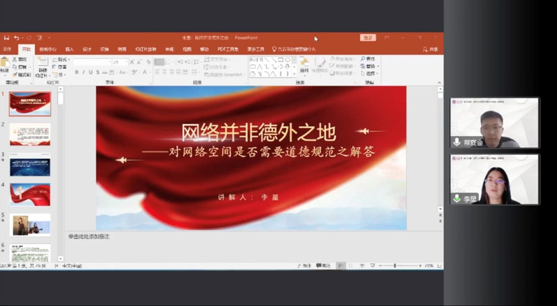 李星老师教学展示的主题为“网络并非德外之地——对网络空间是否需要道德规范之解答”。针对近来学界热切关注的“元宇宙”话题,李星老师以“‘元宇宙’的到来”作问题导入,指出网络已经渗透人类社会生活的方方面面,深刻影响着人们对人生、道德的看法。由于其高度的仿真性,“元宇宙”越成熟,越容易让人产生幻觉,在快乐和刺激中丢失自己。因而,科学技术越是发展,越是要求人的“道德自律”,计算机技术越是迅速发展,越要求相关联的个人具备与之相适应的计算机伦理道德素养。联系到网络道德问题,李老师指出,青年员工正处在成长的拔节孕穗期,道德价值观的培育至关重要,必须引导其正确认识网络、增强道德自律。要引导青年员工正确使用网络工具、加强网络文明自律,并为其营造良好的网络道德环境。最后,李老师就如何善用数字网络技术的问题发指出,网络虚拟空间最终要回归现实生活,要善于对网络技术扬长避短,一是要坚定以人为本的价值立场;二是要确保网络的设计和运行不偏离马克思主义指导和社会主义核心价值观引导;三是构建网络空间命运共同体,开创人类更加美好的未来。