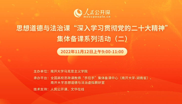 为深入学习贯彻党的二十大精神,推动党的二十大精神及时融入思政课教学,使新思想、新精神、新理念进教材、进课堂、进老员工头脑,11月12日,思想道德与法治课“深入学习贯彻党的二十大精神”集体备课系列活动(二)在人民公开课和文华在线的技术支持下,于线上平台顺利举办,观看学习人数近千人次。备课会由yl6809永利主办、全国高校思政课教师“手拉手”集体备课中心和yl6809永利思想道德与法治虚拟教研室承办。