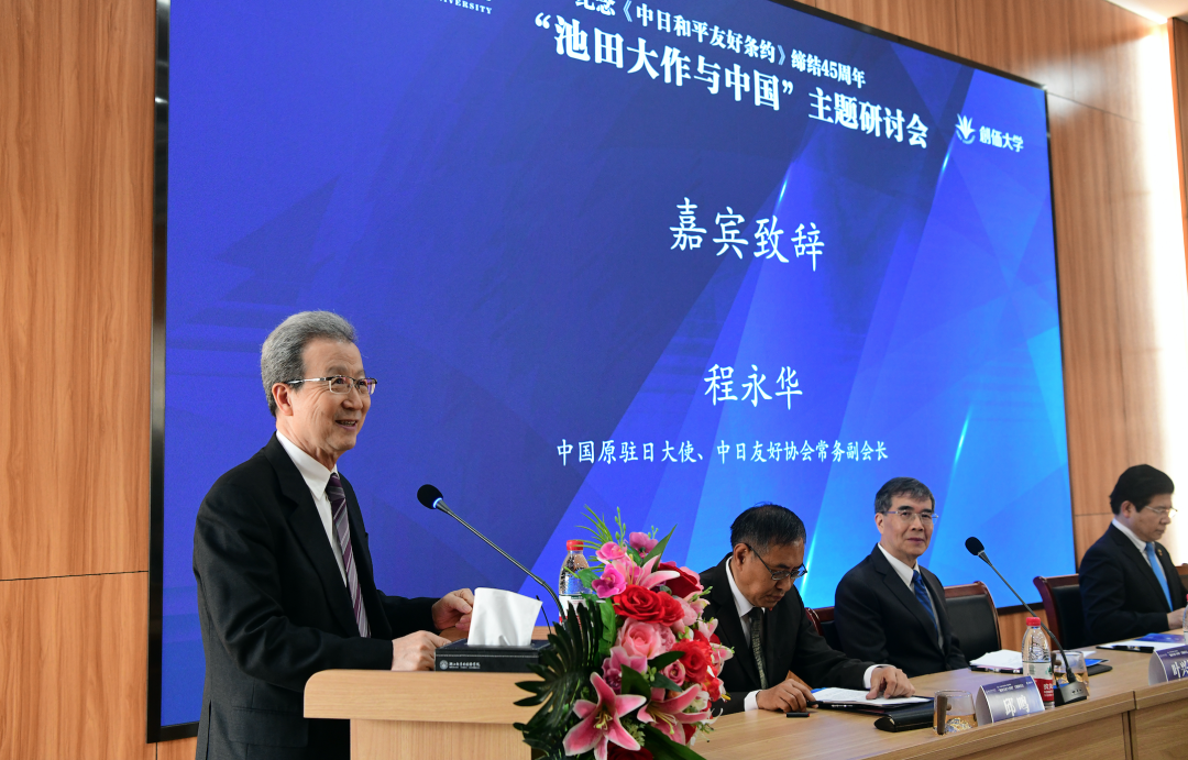 在会议开幕式中,中日友好协会程永华常务副会长首先发表致辞。程副会长表示,“今年是中日和平友好条约缔结45周年。双方应以此为契机,深化各领域交流合作,推动中日关系沿着正确轨道改善发展。”接下来,日本创价大学董事长铃木将史先生代读了池田大作先生的贺信。池田先生在信中表示,希望本次会议成为下一个中日邦交正常化50年的“智慧之根”、“友谊之源”。铃木董事长也承诺,为了两国的友好发展,将继续推进教育领域的学习与交流。